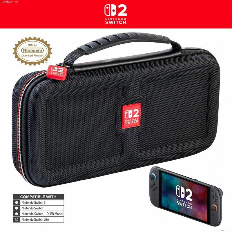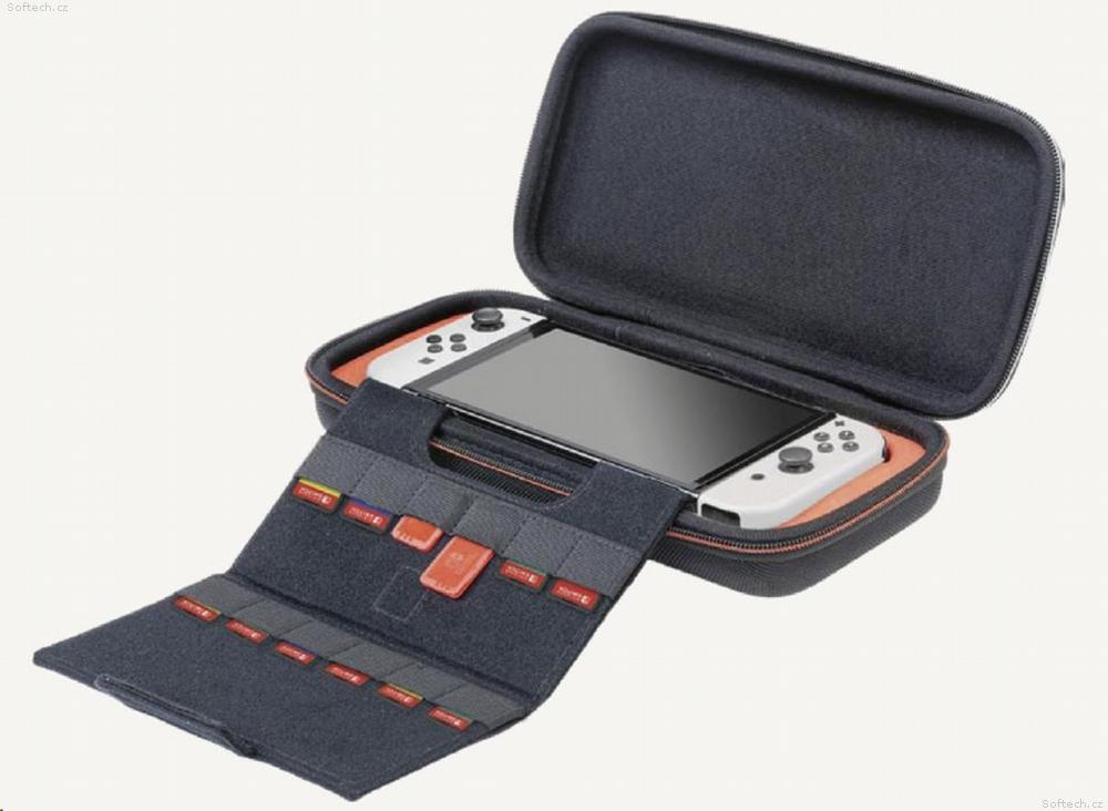 V tomto luxusním přepravním pouzdru od společnosti Nacon můžete bezpečně a pohodlně přenášet nejenom novou herní konzoli Nintendo Switch 2, ale také herní konzoli Nintendo Switch nebo Switch – OLED Model. Ústředním prvkem tohoto pouzdra je nastavitelný stojánek, který při hraní umožňuje pohodlněji sledovat dění na obrazovce, zatímco při přepravě chrání obrazovku i analogové páčky konzole před poškozením. Na jeho vnitřní straně se navíc nachází dvanáct kapsiček pro uložení karet s vašimi oblíbenými hrami. Součástí balení jsou pak také dvě menší plastová pouzdra pro microSD karty.