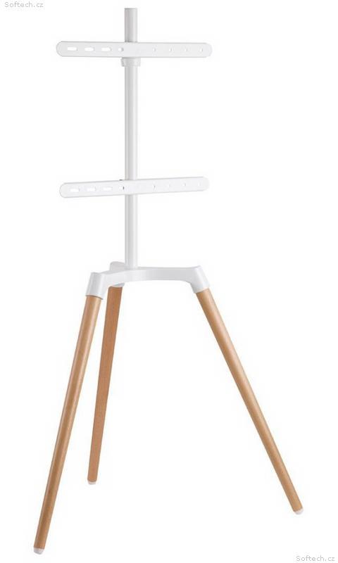 Podlahový stojan pro montáž televize s úhlopříčkou 50" až 65". Minimalistický design s elegantním dřevěným dekorem se hodí do téměř každého interiéru. Tři nohy vybavené gumovými podložkami společně s dodávaným bezpečnostním popruhem zajistí potřebnou stabilitu a minimalizují riziko převrhnutí. Potěší také vestavěný systém správy kabeláže. Stojan nabízí úhel otáčení až 140°. Maximální zatížení je 35 kg.