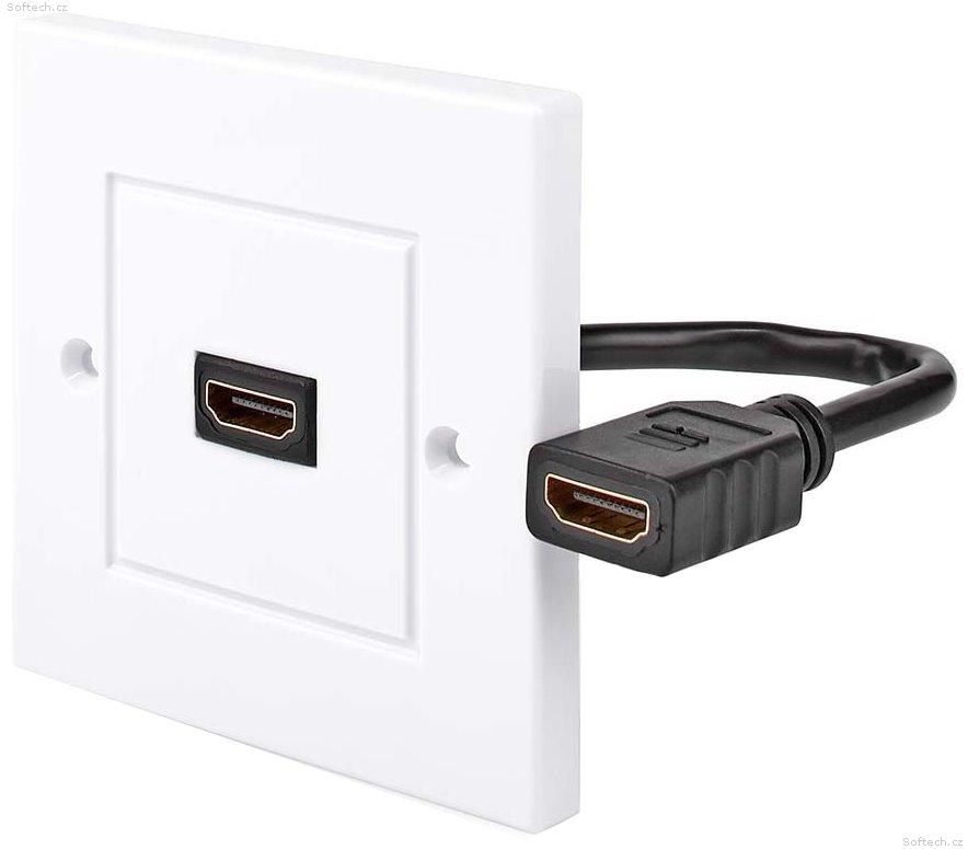 Nástěnný panel s jedním HDMI portem pro zapuštěnou montáž do stěny, panelu, systémových skříní nebo na jiná požadovaná místa. Vejde se do otvoru velikosti běžné nástěnné zásuvky (např. pro televizor, telefon nebo internet). Velikost vnějšího krytu je 86 × 86 mm a velikost středního krytu je 50 × 50 mm. Díky tomu můžete HDMI kabel jednoduše připojovat a odpojovat. Kabel podporuje přenos signálu ve vysokém rozlišení až 4K při 60 Hz i veškeré běžné funkce, jako je ARC (Audio Return Channel), HDCP, 3D, DTS-HD Master Audio nebo Dolby TrueHD. Maximální délka HDMI kabelů pro rozlišení 4K HDR je 8 metrů.