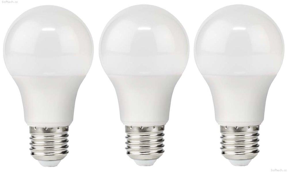 Sada tří LED žárovek o výkonu 4,9 W pro patici E27 ušetří energie a plně nahradí klasickou žárovku s výkonem 42 W. Matný kryt zajistí rovnoměrnou distribuci světla.