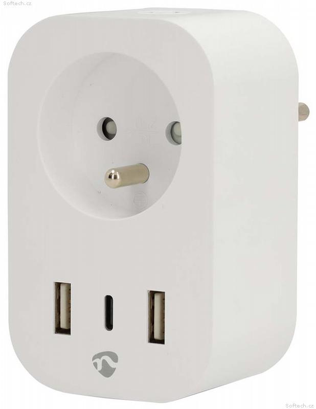 Nedis WIFIP151EWT - WiFi Chytrá Zásuvka |Typ E (CEE 7, 6), 1x USB-C™, 2x USB | 0 - 55 °C | Android™, IOS | Bílá