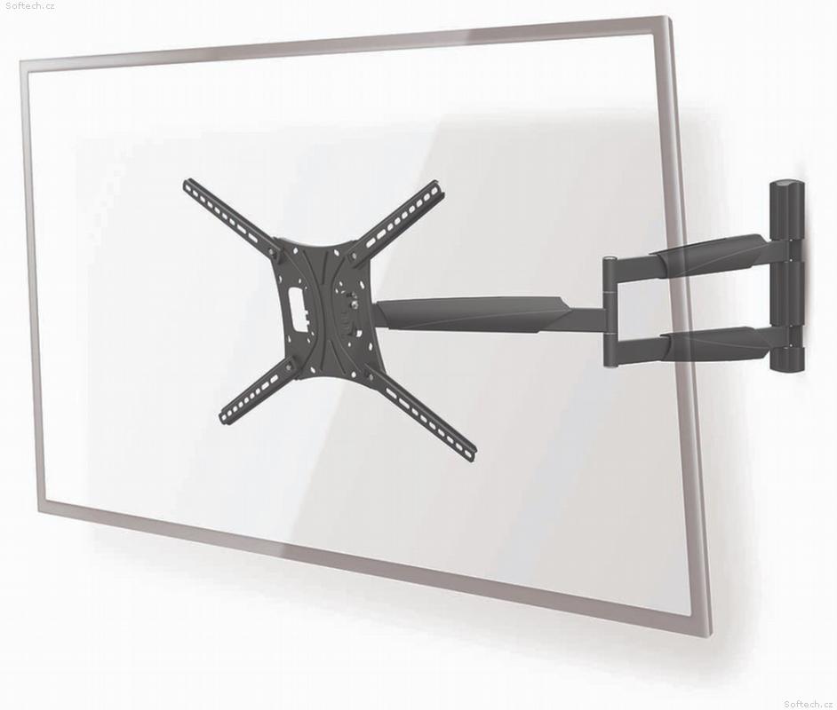 Kombinace oceli a ABS plastu v černém provedení zaručuje dlouhodobou spolehlivost a odolnost. Celková hmotnost držáku 6,1 kg svědčí o robustní konstrukci schopné bezpečně unést i největší televizory.
