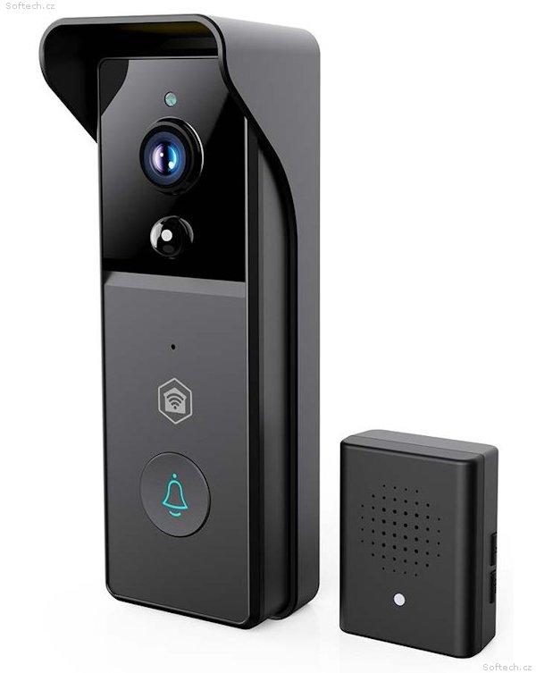 Videozvonek, USB zvonek pro domácí upozornění, instalační materiály včetně nástěnného držáku, USB-C nabíjecí kabel a podrobný návod k použití v češtině.