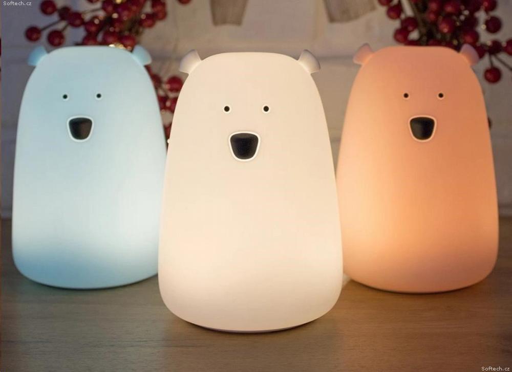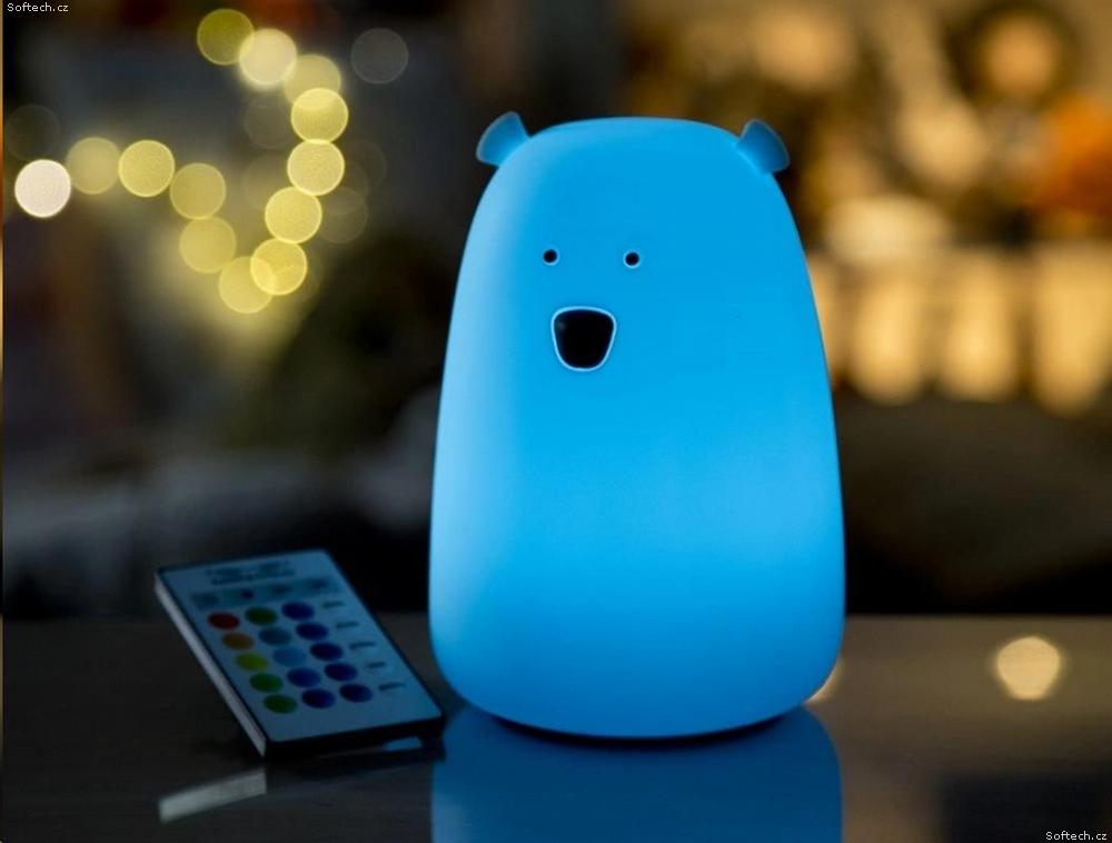 Medvídek změní barvu poklepáním, jas i barvu můžete upravit pomocí dálkového ovladače.