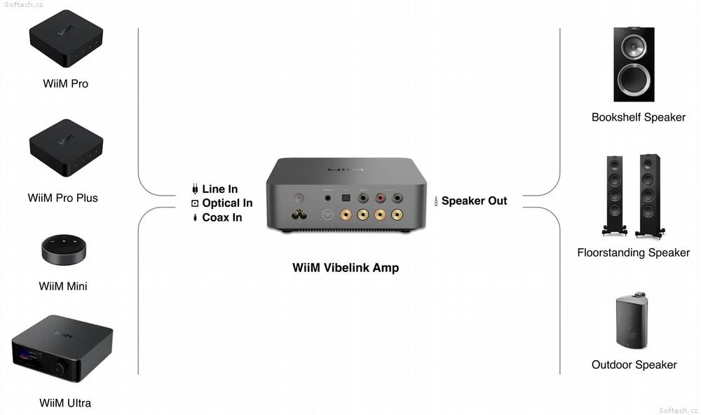 Vibelink Amp je HiFi zesilovač od WiiM navržený pro použití s moderními firemními streamovacími zařízeními, podobně jako jsou WiiM Mini, Pro, Pro Plus či Ultra, ale tím že je vybaven pečlivě vybranými komponenty vysoké kvality z něj dělá ideálního společníka také pro vaše audio komponenty vysoké kvality (CD / Streamery, BD/DVD přehrávače, Gramofony s apod.)