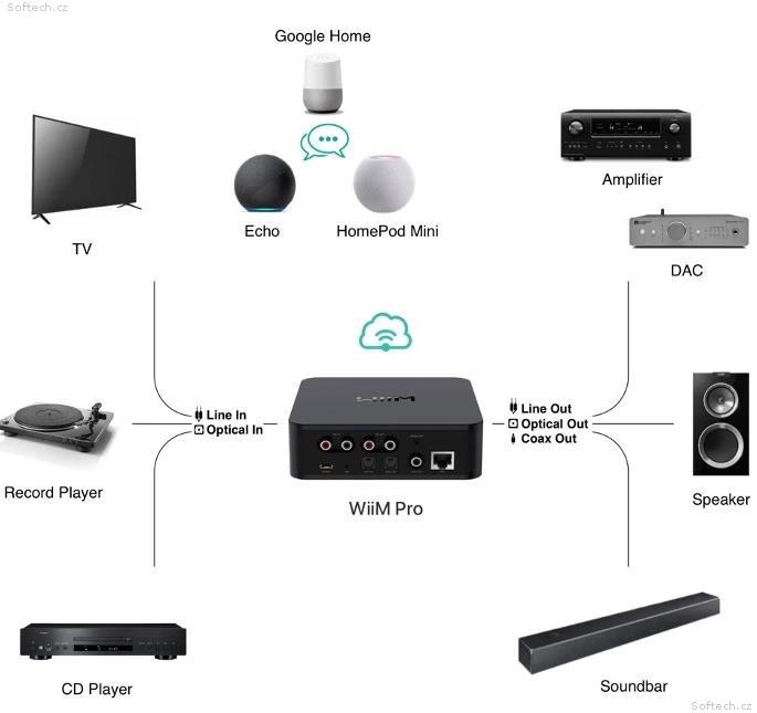 Pokud vám více vyhovuje audio streamování přímo z přehrávané aplikace, u WiiM Pro je přítomna podpora TIDAL Connect, AirPlay 2, Chromecast, Spotify Connect (Free i Premium).