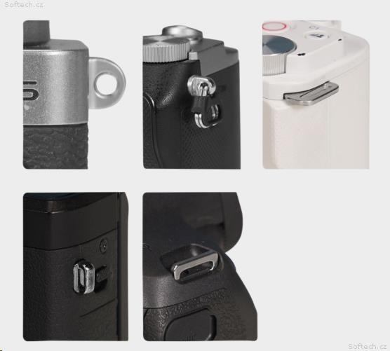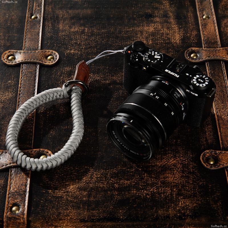 Zápěstní popruh se instaluje provlečením lana přímo smyčkou ramenního popruhu fotoaparátu, která je kompatibilní s většinou rozhraní ramenních popruhů fotoaparátu.