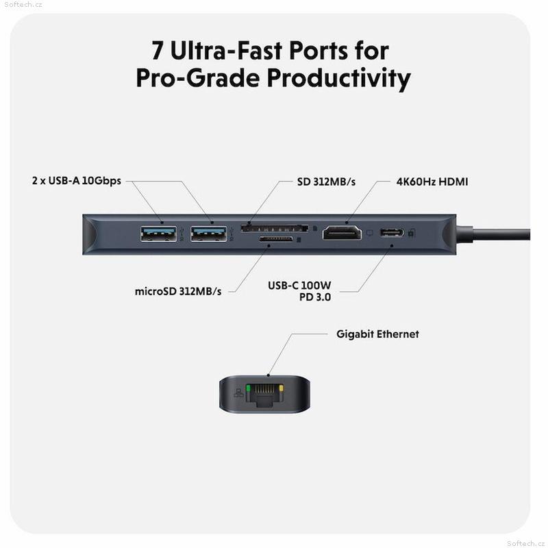 Porty: HDMI, 2 x USB-A, USB-C Power Delivery 100W (průchozí napájení) PD 3.0, Ethernet, micro SD 4.0, SD 4.0