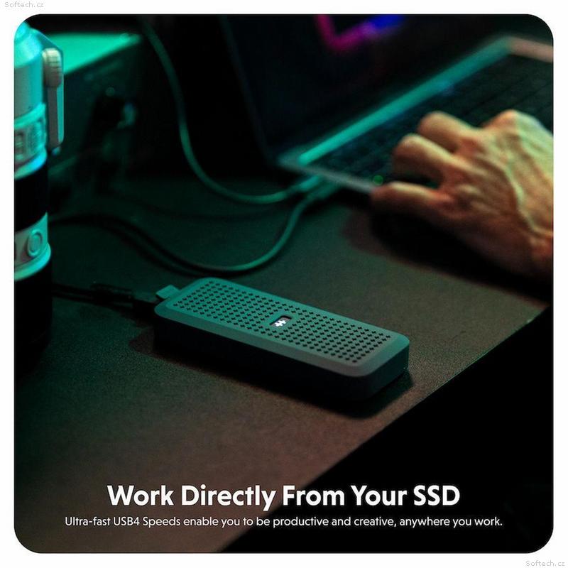 První externí pouzdro USB 4.0 USB4 NVMe s úžasnou maximální teoretickou přenosovou rychlostí 40 Gb/s, poskytuje sekvenční čtení rychlostí až neuvěřitelných 2700 MB/s a kontinuální zápis rychlostí až 1400 MB/s. Tento nenápadný sprinter se schovává v nenápadném pouzdře plném technologií z budoucnosti.