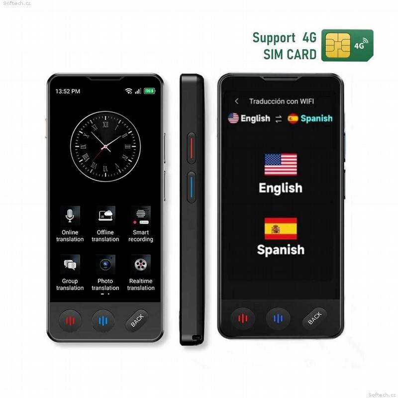 SMART AI Online / Offline hlasový + Foto prekladač vreckový (Preklad 138 jazykov) - Langie S3. Digitálny tlmočník do vrecka prenosný s podporou 4G SIM.