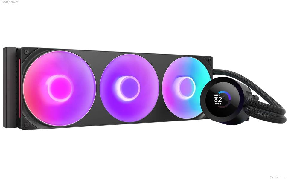 Ventilátory: F360 RGB Core (3× 120 mm), 500–2400 ± 250 RPM