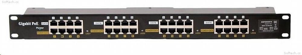 Aktivní/pasivní POE injektor - 16x 1Gb/s, stíněný panel, 802.3af/at