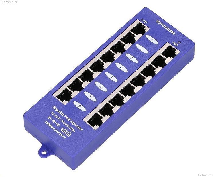 POE injektor pasivní - 8x 1 Gb, s, stíněný, svorko