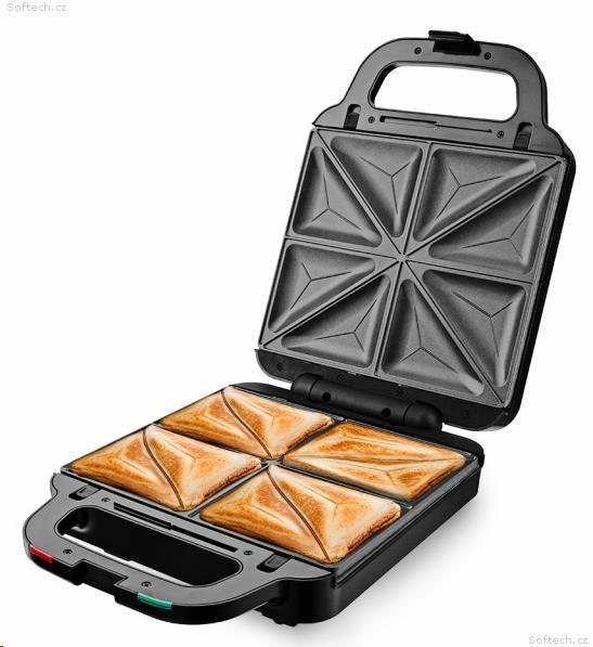 Sendvičovač pro 4 sendviče, vafle a grilování, Funkce otevřeného grilu, Tepelně izolované