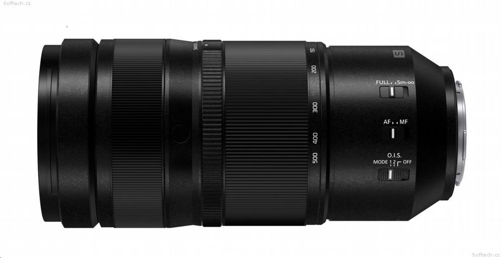 Ultra kompaktní teleobjektiv Lumix S pro foto a video v rozlišení 8K, ohnisková vzdálenost 100–500 mm s možností prodloužení až na 1000 mm (s 1.4×/2.0× telekonvertorem), optická stabilizace obrazu O.I.S.