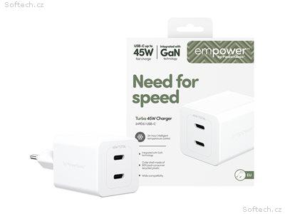empower by PanzerGlass - Sítový adaptér - 45 Watt - napájení Power Delivery 3.1 - 2 výstupní konektory (24 pin USB-C) - stríbrne bílá