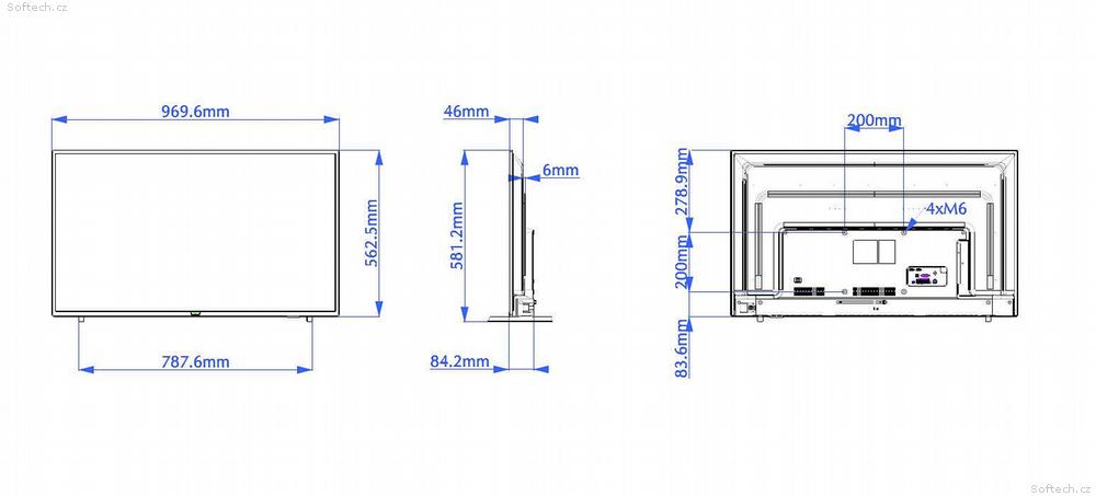 Montáž na zeď: VESA: 200 x 200 mm, M6