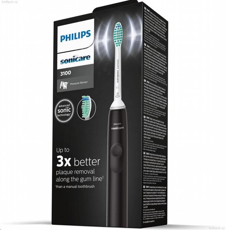 Philips HX3671, 14 Sonicare 3100, zubní kartáček, pro dospělé, 31000 kmitů, min, časovač, tlakový senzor, indikátor, černý