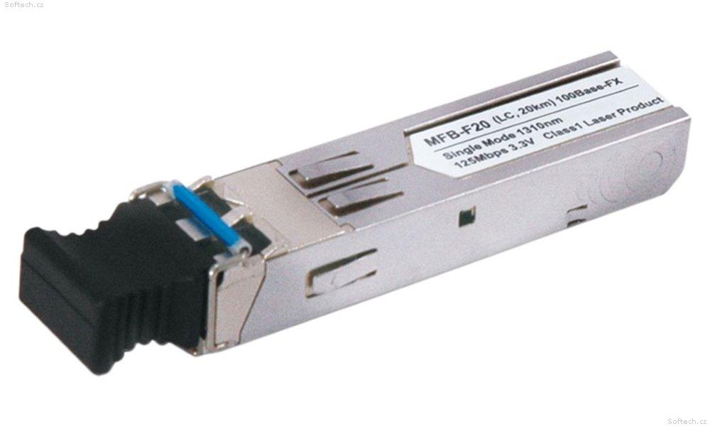 Fast Ethernetový modul formátu SFP, 100Base-FX, duplexní LC konektor, singlemode. Dosah 20km na single mode vlákně, 1310 nm. Podpora DDM.