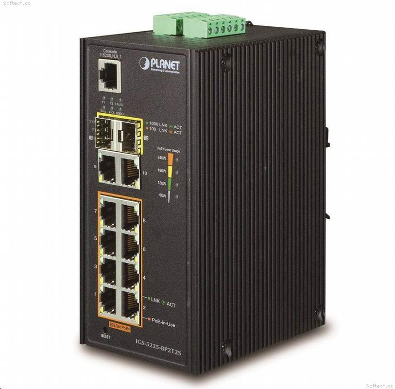 Switch obsahující 8 x RJ-45 port s rychlostí 10/100/1000 Mbps a PoE napájením, 2 x RJ-45 s rychlostí 10/100/1000 Mbps sdílené s dvěma SFP porty. Navíc je vybaven interním ONVIF modulem pro detekci a info IP kamer v síti.
