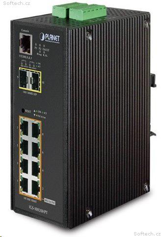 Průmyslový spravovatelný přepínač a konvertor 8x RJ-45 100/1000Base-T, 2x SFP 10/100/1000Base-X, podpora IPv6.