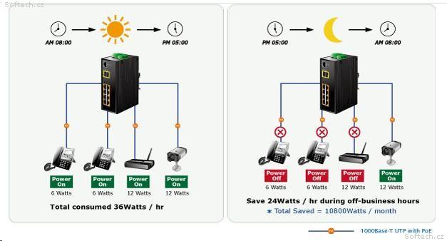 integrovaný plánovač pro plánované vypnutí napájených koncových prvků