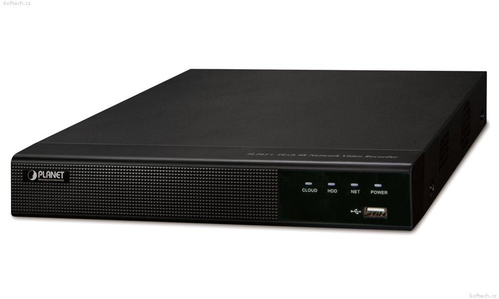 Záznamové zařízení pro 16 IP kamer s operačním systémem Linux. Zařízení NVR-1600 je určeno pro dohledové aplikace s lokálním HDMI/VGA zobrazováním a podporuje IP kamery s rozlišením až 4K. Povoleny kombinace různých rozlišení do 8 Mpx a datový tok do 120 Mb/s (vstupní šířka pásma max. 120 Mb/s). K dispozici je 1 pozice pro SATA pevný disk s kapacitou až 8 TB. Aplikace PLANET Search Tools a PVMS umožňují snadnou správu NVR a kamer.