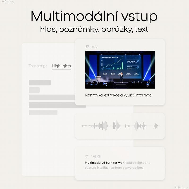 Váš inteligentní AI asistent a partner: záznam, přepis, souhrn, organizace, dedukce