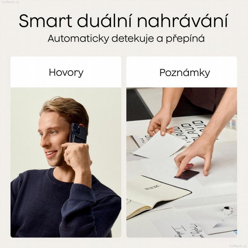 Automatický duální režim nahrávání – hlasové poznámky nebo telefonní hovory
