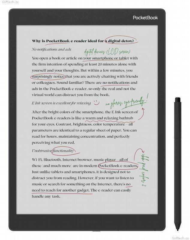 Rozlišení displeje 1404x1872 (227 PPI, 16 odstínů šedi), 468x624 (76 PPI, 4096 odstínů barev)