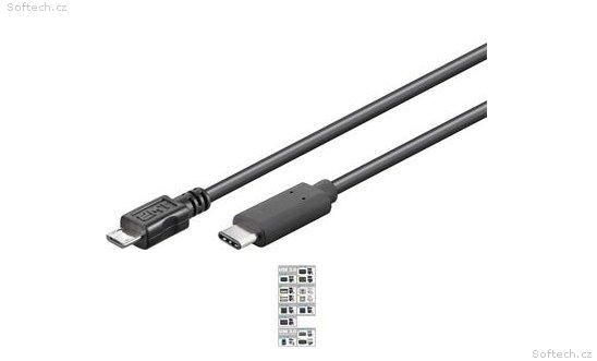PremiumCord Cable USB connector C/male - USB 2.0 connector Micro-B/male, 1m