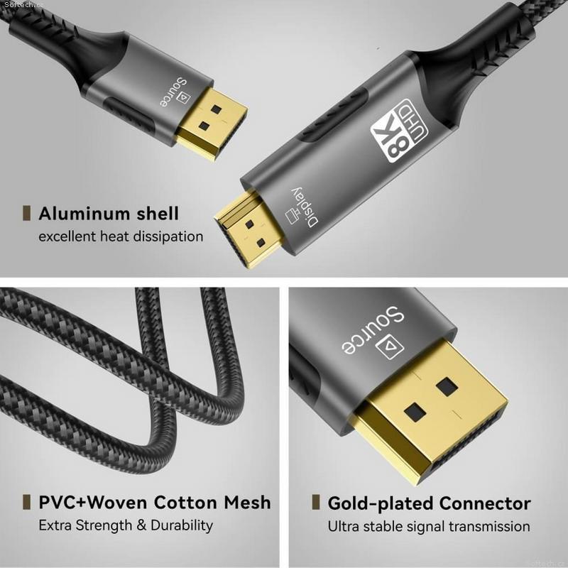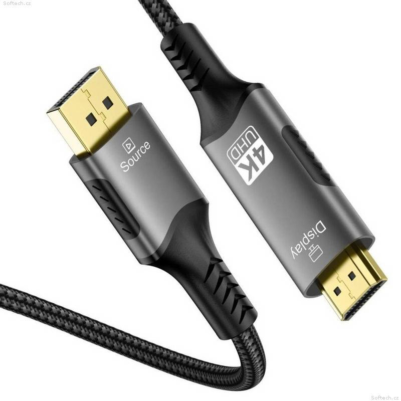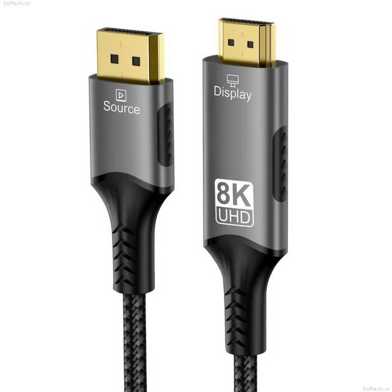 PremiumCord DisplayPort 1.4 na HDMI2.1 kabel pro rozlišení 8K@60Hz, 4K@144Hz, 2m