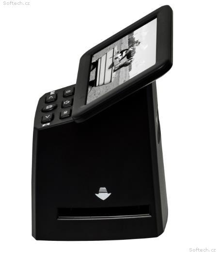 Filmový skener 15,3Mpx CMOS 1/2,3" s barevným 5" TFT LCD monitorem a slotem pro SD-SDXC max 128 GB - možnost práce i bez PC. Rychlý 1s sken, 3200 dpi, interpolace na 22Mpx , PC/MAC, USB2. Součástí balení síťový zdroj 5V/1A, kabel USB, 2x držáky a čistící nástroj. Automatické nebo manuální nastavení expozice a barev. Manuální posun 4 diarámečků (max 3,2mm tloušťka) nebo 6 políček barevného i ČB filmu (negativ/pozitiv) v přiložených držácích. Barevný LCD monitor a SD slot velmi zjednodušují skenování bez nutnosti propojení s počítačem.