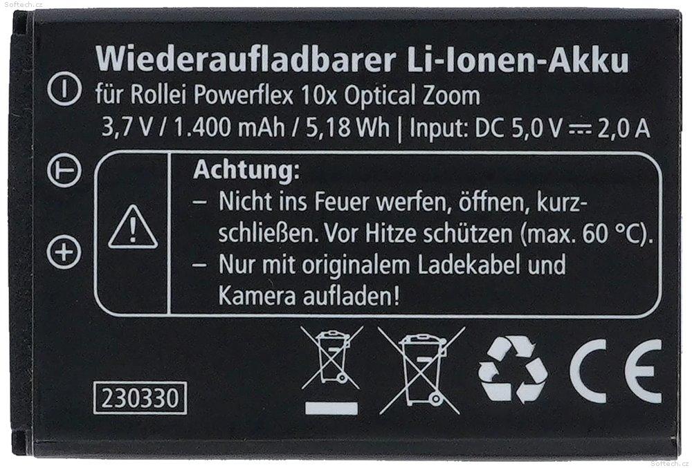 Kompatibilita: Rollei Powerflex 10x Kapacita: 1400 mAh Technologie: Lithium-iontová Napětí: 3,7 V