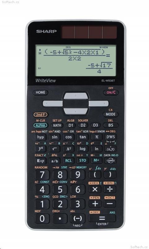 Nový EL-W506T je nejpokročilejším vědeckým kalkulátorem z portfolia Sharp. Obsahuje 640 matematických funkcí a je vhodný zejména pro studenty vyšších škol a univerzit. Bodový displej "WriteView" umožňuje zápis a zobrazení výrazů v obvyklém matematickém vyjádření, tedy stejně jako na papíře. Pevný plastový kryt chrání kalkulátor před poškrábáním a pády, solární napájení šetří záložní baterii.