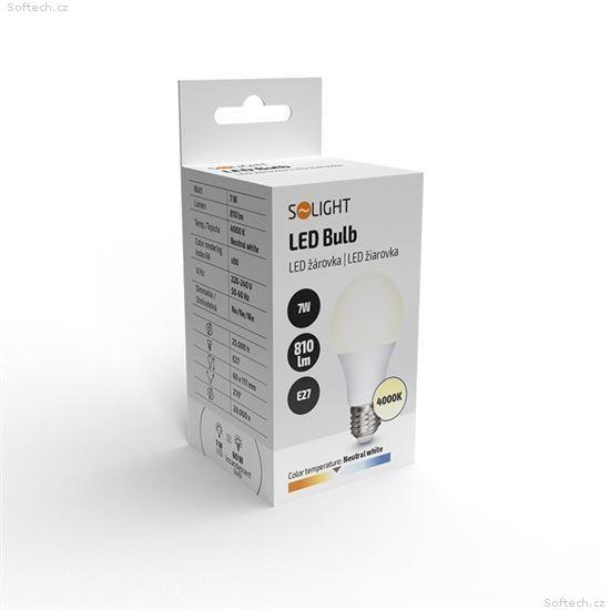 Solight LED žárovka, klasický tvar, 7W, E27, 4000K