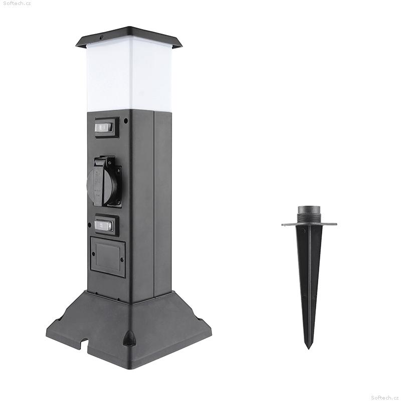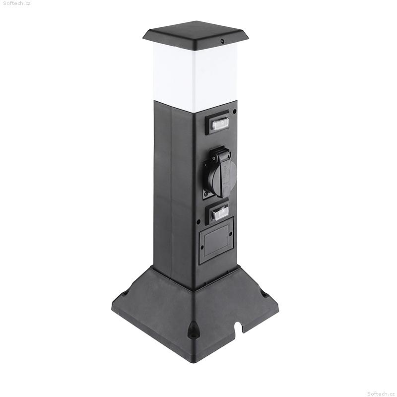 Solight zahradní sloupek IP44 s LED osvětlením, plast, 2 zásuvky, hranol, černý