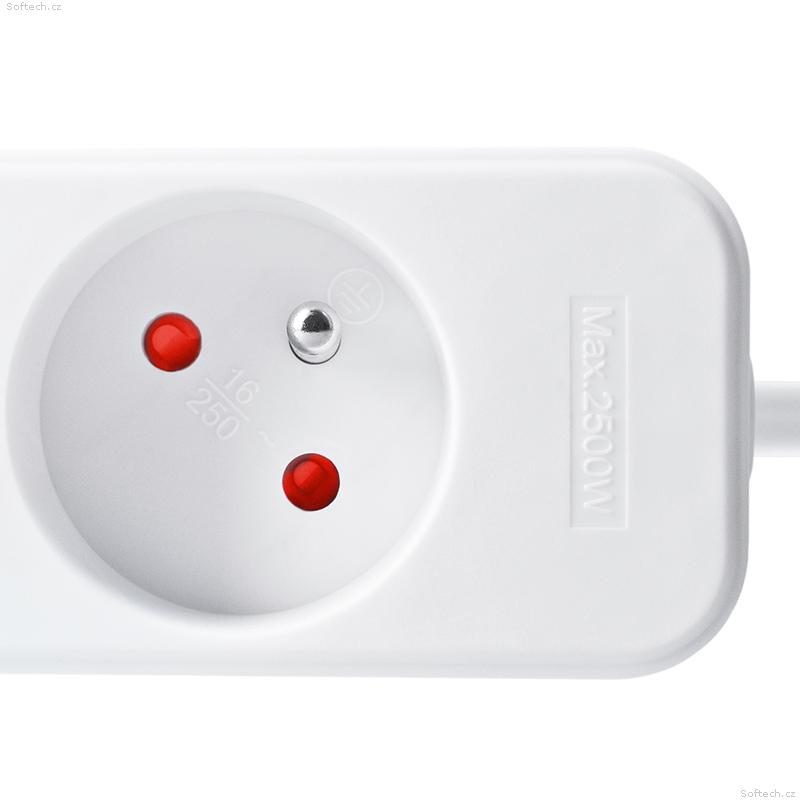 • Solight prodlužovací přívod, 5 zásuvek, bílý, 1,5m