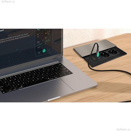 USB-C port s technologií Power Delivery (PD) a USB-A s Quick Charge 3.0 zkracují dobu nabíjení mobilních zařízení na minimum. Při současném použití obou USB portů se výkon inteligentně rozděluje dle potřeb jednotlivých zařízení. Ideální pro pracovní místa s potřebou častého nabíjení notebooků, telefonů, tabletů, nositelné elektroniky, apod.