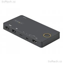StarTech.com 2 Port Hybrid USB-A + HDMI & USB-C KVM Switch, Single 4K 60Hz HDMI 2.0 Monitor, Compact Desktop and, or Laptop HDMI KVM Switch, USB Bus Powered, Thunderbolt 3 Compatible - 2 Port HDMI KVM Switch (SV221HUC4K) - Přepínač KVM, audio - 2 x KVM, zvuk - desktop