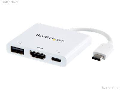 StarTech.com USB-C to HDMI Adapter - White - 4K 30Hz - Thunderbolt 3 Compatible - with Power Delivery (USB PD) - USB C Dongle (CDP2HDUACPW) - Video adaptér - USB-C s piny (male) do HDMI, USB typ A, USB-C se zdírkami (female) - 60 mm - bílá - podporuje 4K, USB Power Delivery (60W)