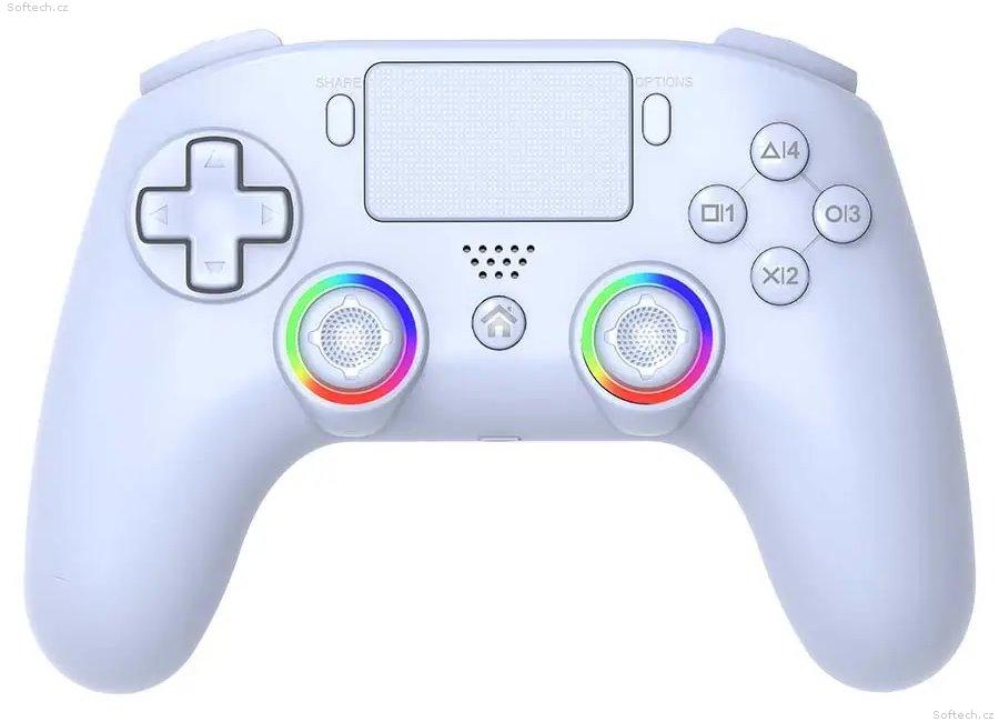 Tento herní ovladač nabízí plnohodnotnou alternativu k originálnímu DualSense ovladači za výrazně příznivější cenu. Vybaven je bezdrátovým připojením, pohybovými senzory, touchpadem a vibračními motory pro pohlcující herní zážitek. Moderní design v bílém provedení doplňuje RGB LED podsvícení joysticků s 8 barvami a 2 dynamickými režimy duhového osvětlení.