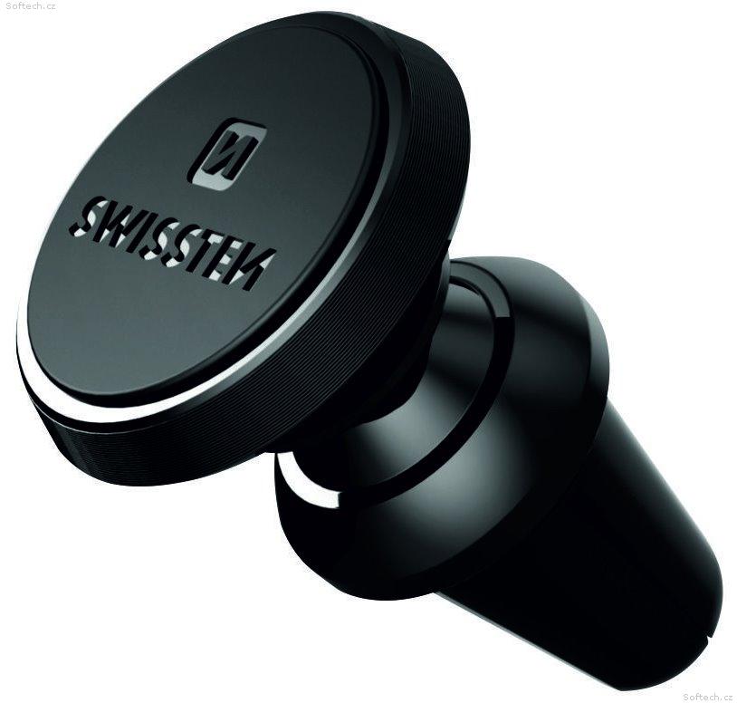 Kovový magnetický držák pro mobilní telefon určený pro upevnění do ventilační mřížky. Je opatřen šesti magnety a pogumovaným povrchem pro lepší zabezpečení telefonu. Držák lze díky rotačnímu kloubu volně otáčet o 360°.