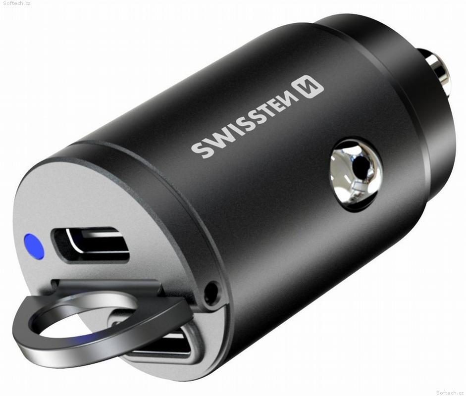 Miniaturní nabíječka do auta se dvěma výstupy USB-C s výkonem až 30 W, která na cestách spolehlivě nabije jakýkoli mobilní telefon nebo tablet, a to i současně.