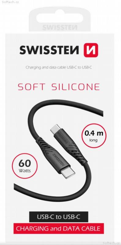 SWISSTEN DATOVÝ KABEL SOFT SILICONE USB-C, USB-C 0,4 M ČERNÝ