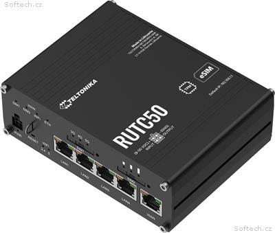 Teltonika RUTC50 je robustní průmyslový router, který nabízí 5G mobilní komunikaci pro vysokorychlostní a datově náročné aplikace. Mobilní komunikace 5G s možností dual SIM konfigurace je kombinovaná s 5 porty Gigabit Ethernet a Wi-Fi 6, umožňuje spolehlivý přenos dat s ultra nízkou latencí.
