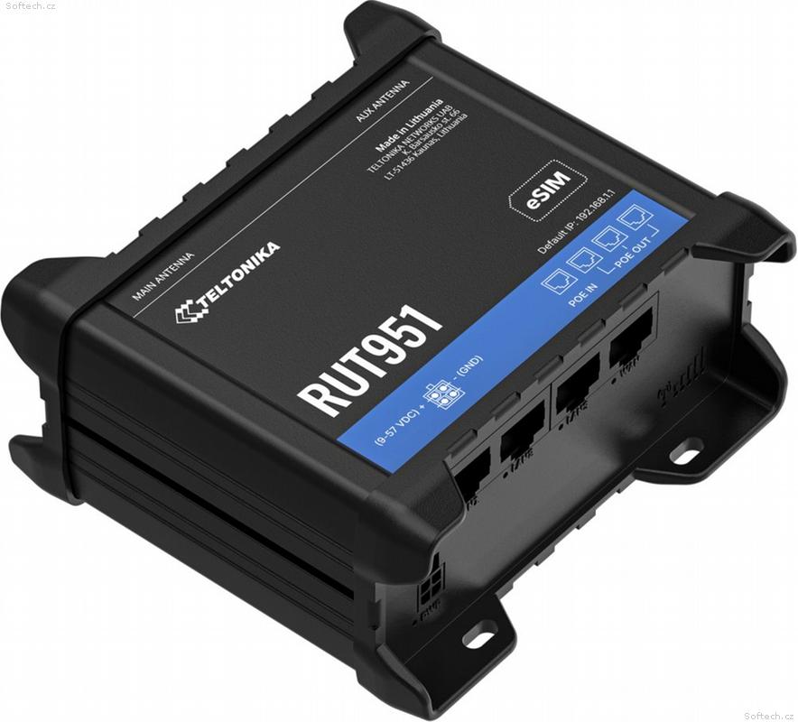 RUT951 PoE+ je kompaktní 4G LTE CAT4 router pro nasazení v náročných aplikacích vč. mobilního provozu s Wi-Fi a čtyřmi ethernetovými porty (1) WAN port a (3) LAN porty. Díky tomu dokáže vyhovět potřebám nejrůznějších scénářů využití. Tento router, poháněný systémem RutOS, nabízí pokročilé možnosti přizpůsobení, automatizační funkce a špičkové zabezpečení včetně PoE+ a podpory eSIM.