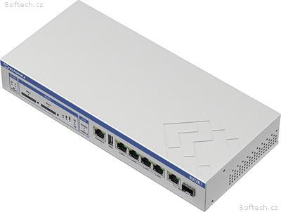 Pro připojení optikou je osazen WAN SFP port. Další periferie, či úložiště je možné připojit pomocí USB 2.0 portu. Procesor Quad Core ARM Cortex A7 s taktem 717MHz a 256MB DDR3 RAM zajišťují hladký chod. Napájení je realizováno 12V napájecím adaptérem. Do zařízení je však možné zapojit dva zdroje, přičemž druhý je určen jako záloha pro případ výpadku.
