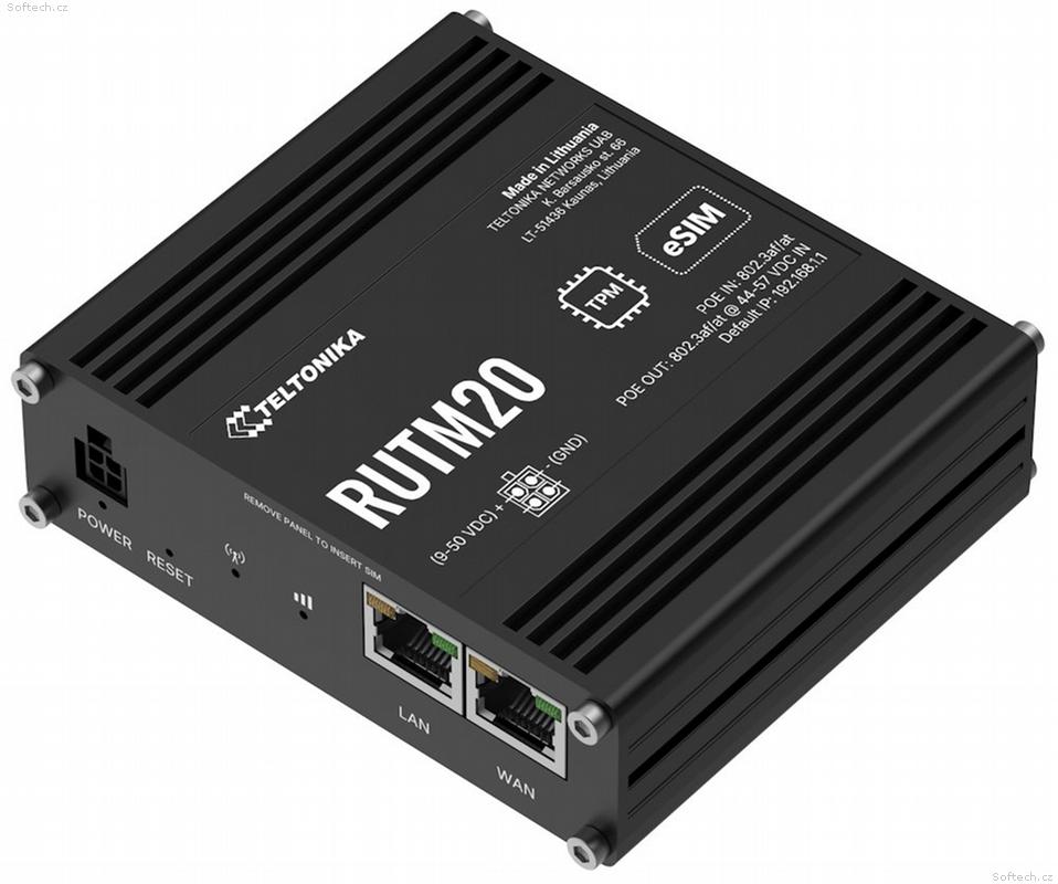 RUTM20 podporuje průmyslové protokoly Modbus TCP (server/client), OPC UA (client/server), BACnet/IP (router), DNP3 (station/outstation) a DLMS/COSEM (client). Integruje se s IoT platformami Azure IoT Hub, AWS IoT Core, ThingWorx a Cumulocity. Funkce Data to Server umožňuje odesílání dat přes HTTP(S), MQTT a Azure MQTT s vlastním LUA skriptováním.