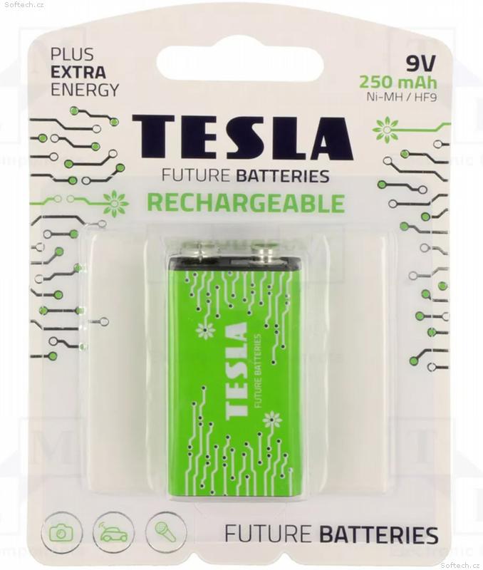 Ni-MH dobíjecí baterie TESLA GREEN 9V (HR9V) 250 mAh - 1ks, blister